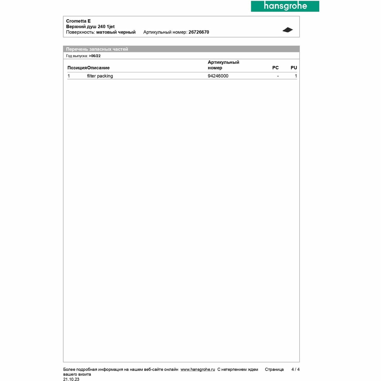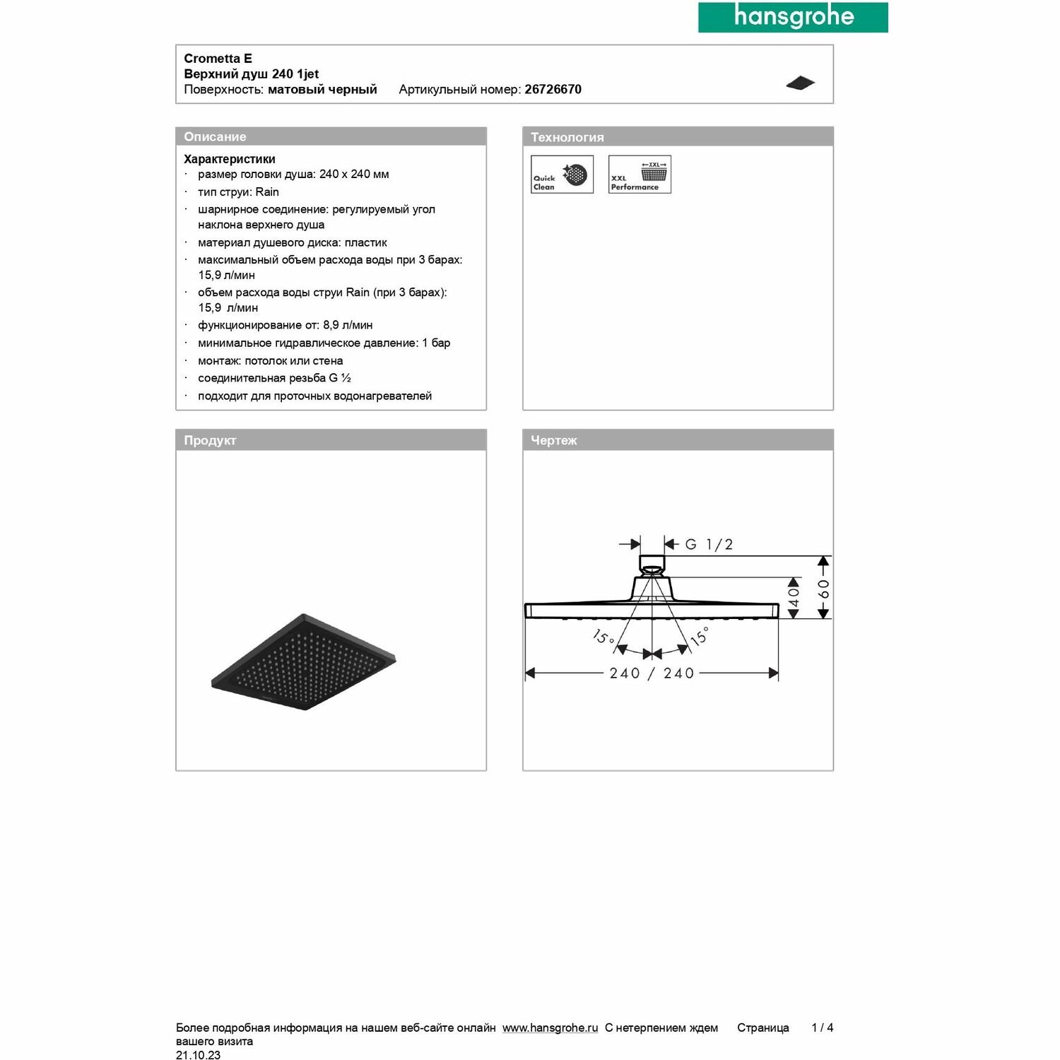 | Производитель | hansgrohe |