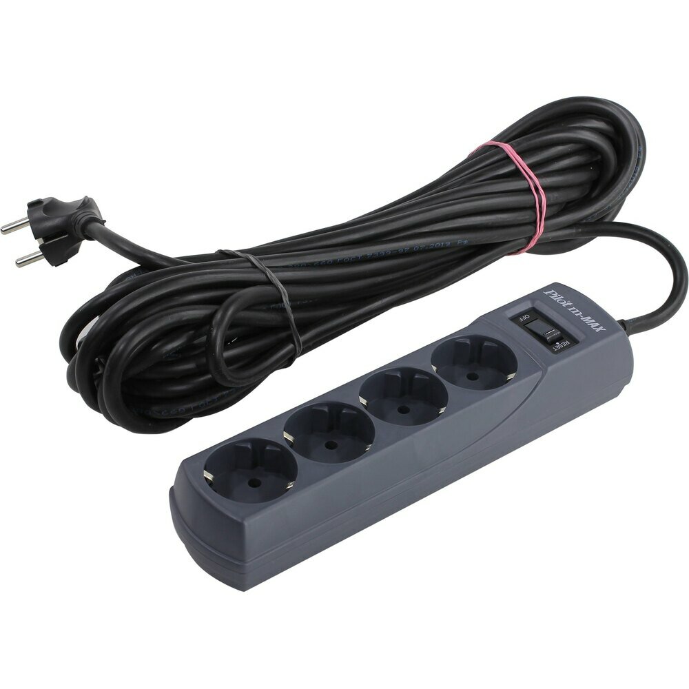 Купить Сетевой фильтр Pilot m-MAX 10m, 4 розетки, с/з, 15А / 3300 Вт графит 10 м 235 мм 55 мм 58 мм 4