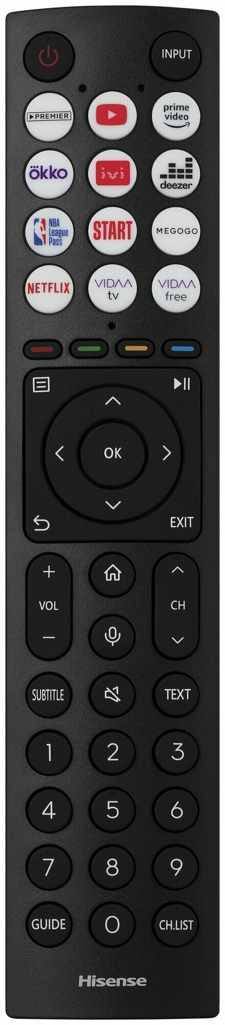 | Дополнительная информация | процессор - Quad Core/MT9900; операционная система VIDAA; функция шумоподавления; масштабирование изображения Ultra HD; технология динамической компенсации MEMC; телетекст; интернет браузер Odin; магазин приложений |