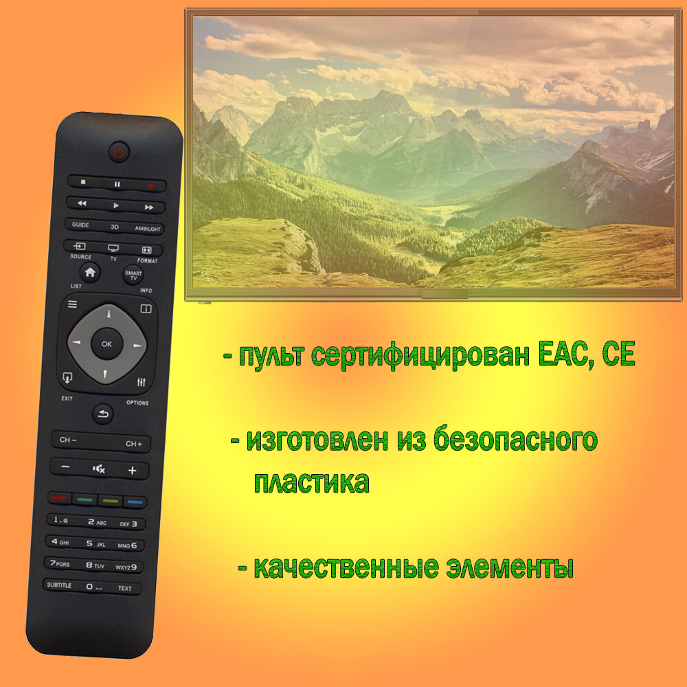 Пульт для телевизора Philips 32PFL6007K/12, ИК - интерфейс, чёрный, настройки не нужны интересное: