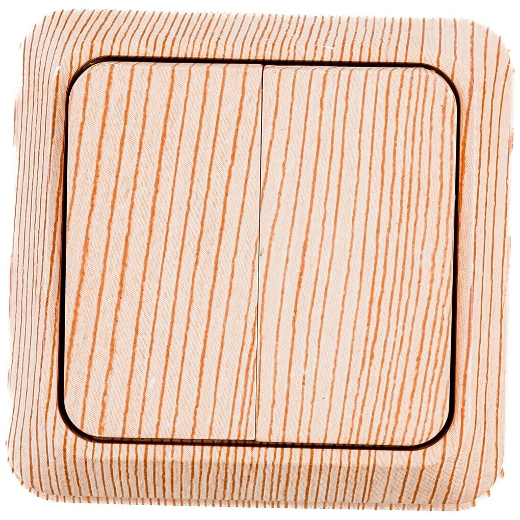 Купить Выключатель двухклавишный Intro Quadro 2-104-11 открытой установки 10А 250В сосна