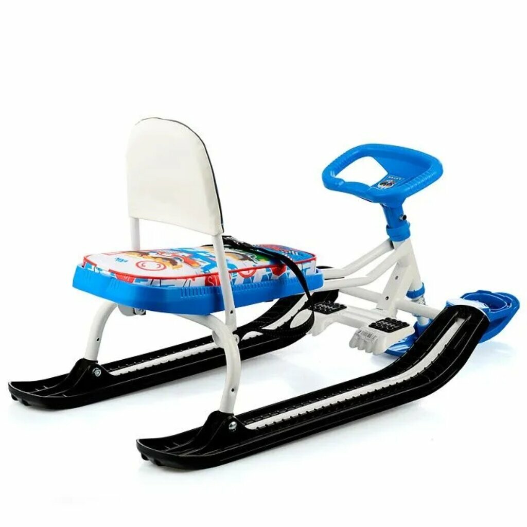 Снегокат Ника-SNOWPATROL (SNOWPATROL 2) рама белая со спинкой, трос авт. нам, велоруль