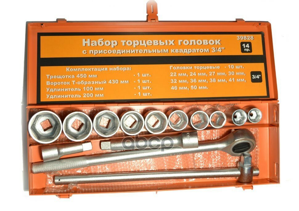 Автодело 39828 Набор головок (14 предметов) "АвтоDело" (3/4", 22-50 мм)