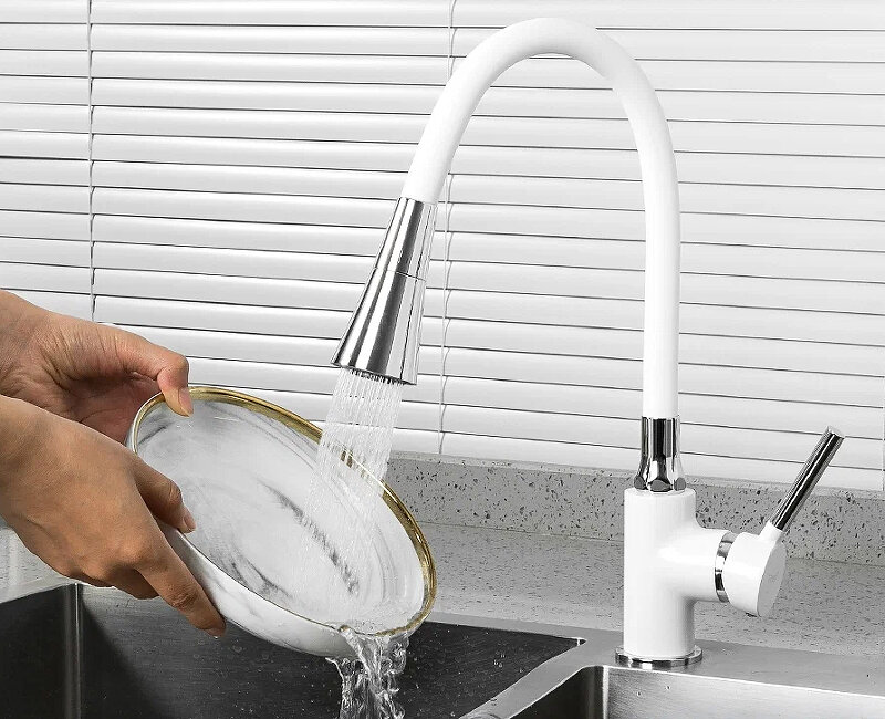 Смеситель для кухни с гибким изливом, белый/хром FRAP F4044-8