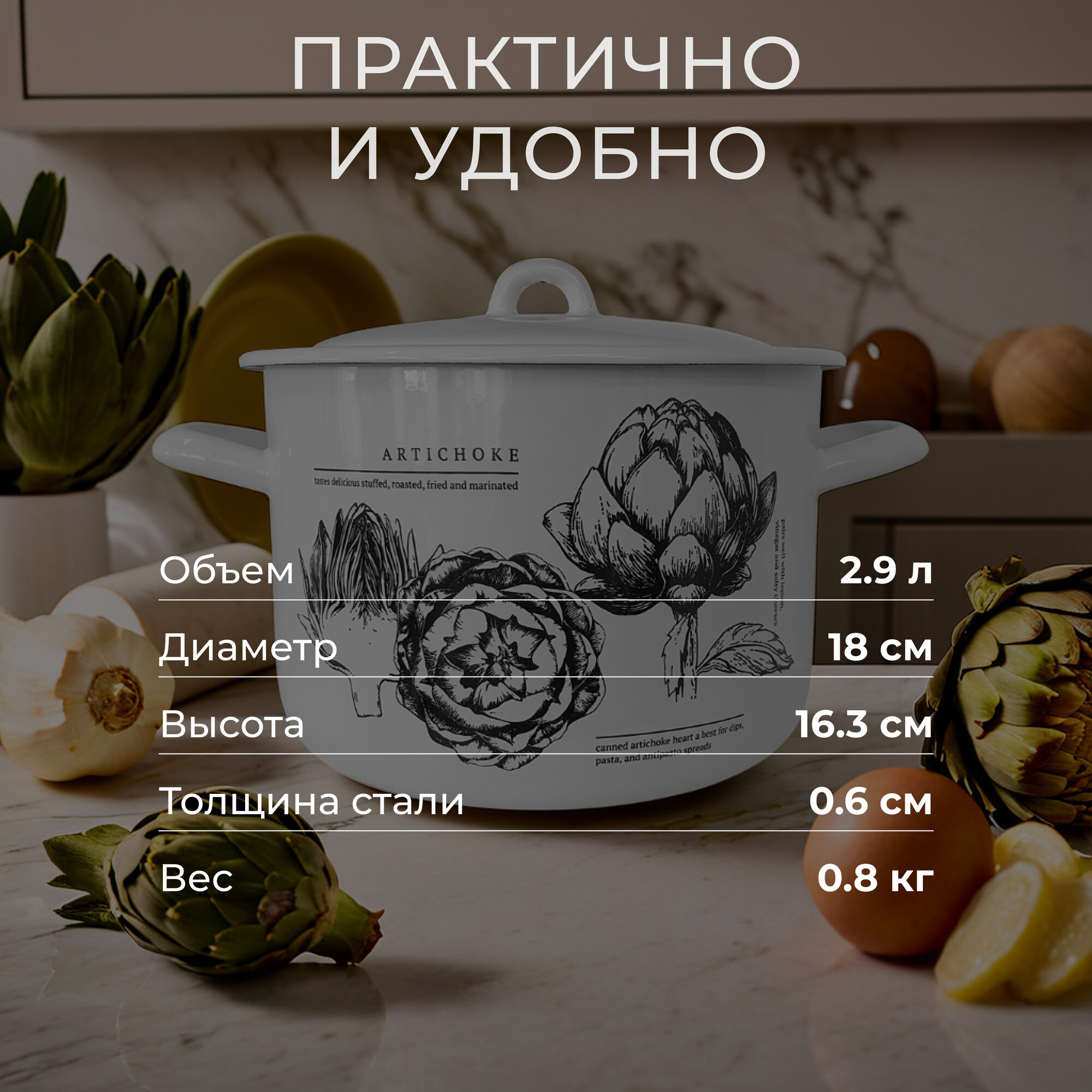 Купить Кастрюля эмалированная Лысьвенские эмали Artichoke, кастрюля с крышкой 2,9 литра