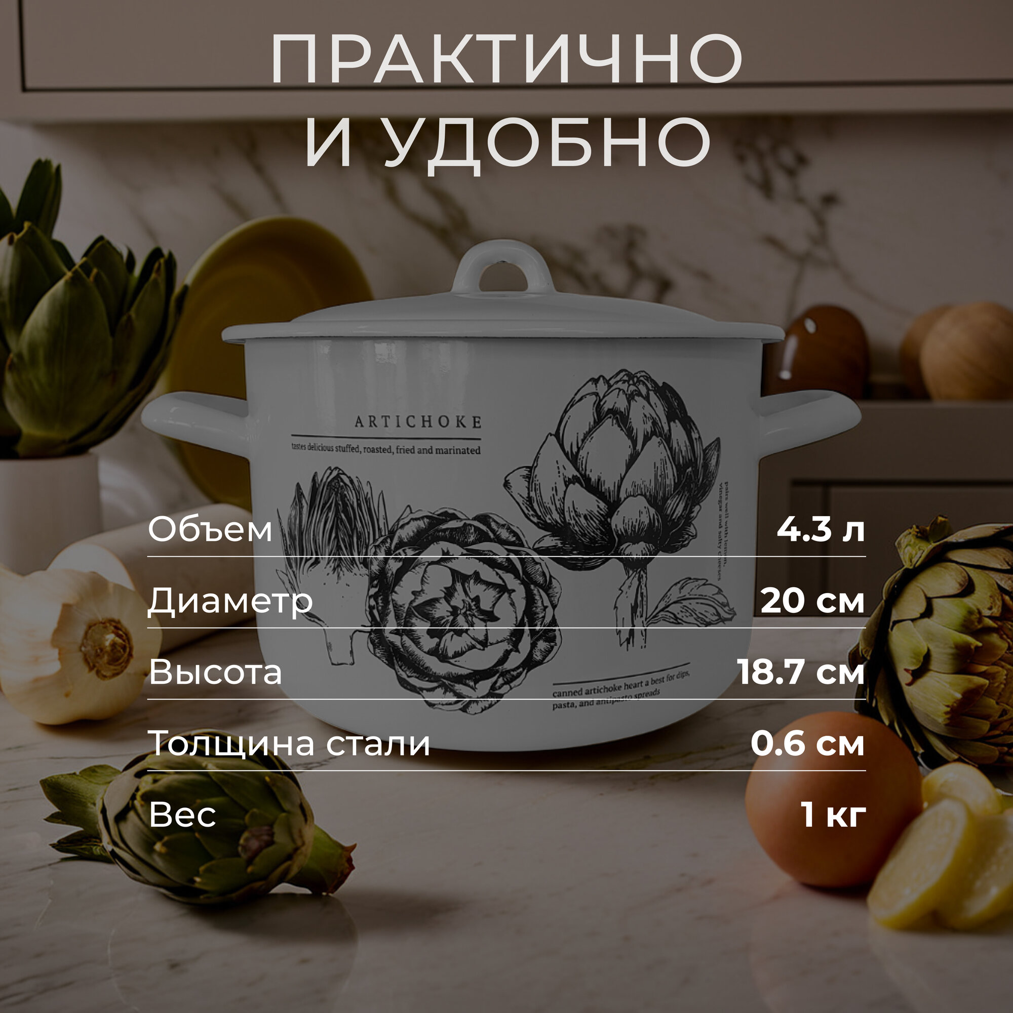 СохранитьКастрюля 4,3 литра с крышкой Лысьвенские эмали Artichoke, кастрюля эмалированная интересное: