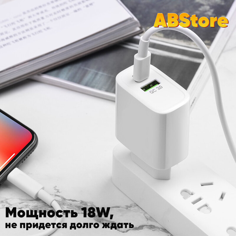 Сетевое зарядное устройство USB 3.0 Type C PD Power Delivery адаптер белый HS19 интересное: