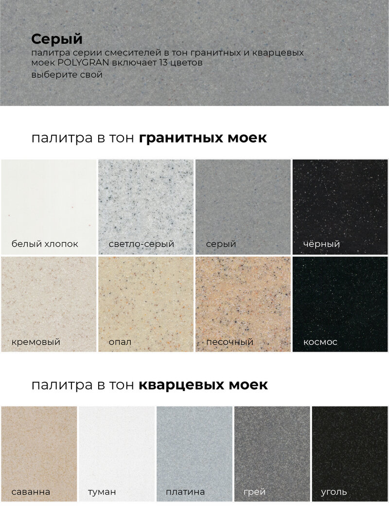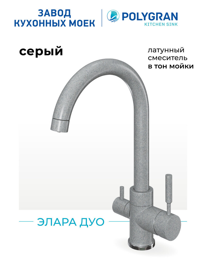 Смеситель для кухни Polygran Элара Дуо под фильтр, №14 серый (627659)