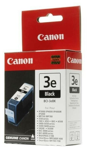 Картридж оригинальный CANON 3e (BCI-3eBK) черный для принтеров Canon BJC-3000/6100/6200/6200S/6500/i550/560/560S/6500/850/860/865, MultiPASS C100, PIXMA iP3000/iP4000/iP4000R/iP5000/