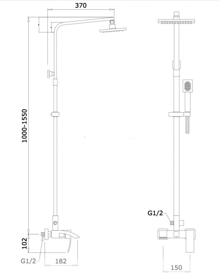 | Форма бокового душа | квадратная |