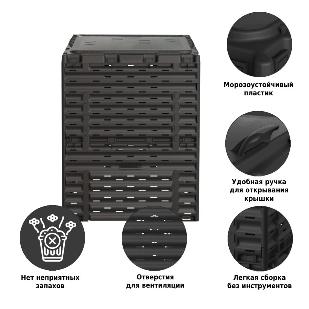 Компостер PitEco с крышкой 300 л чёрный интересное: