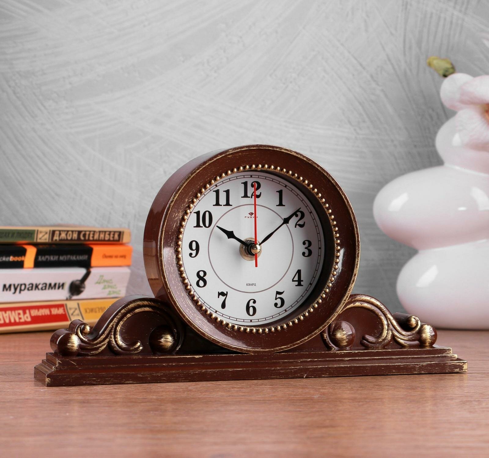 Часы настольные "Милица", плавный ход, 26 х 14 см, корпус коричневый с золотом 4833056