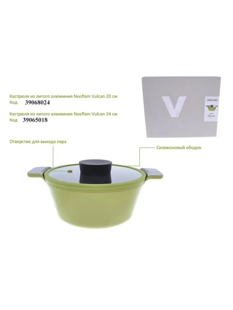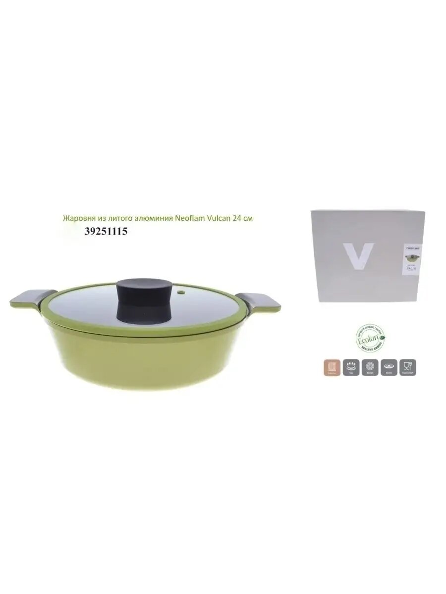 Сковорода алюминиевая с керамическим покрытием, 24 см, зеленый, серия Vulcan, Neoflam, GL49957