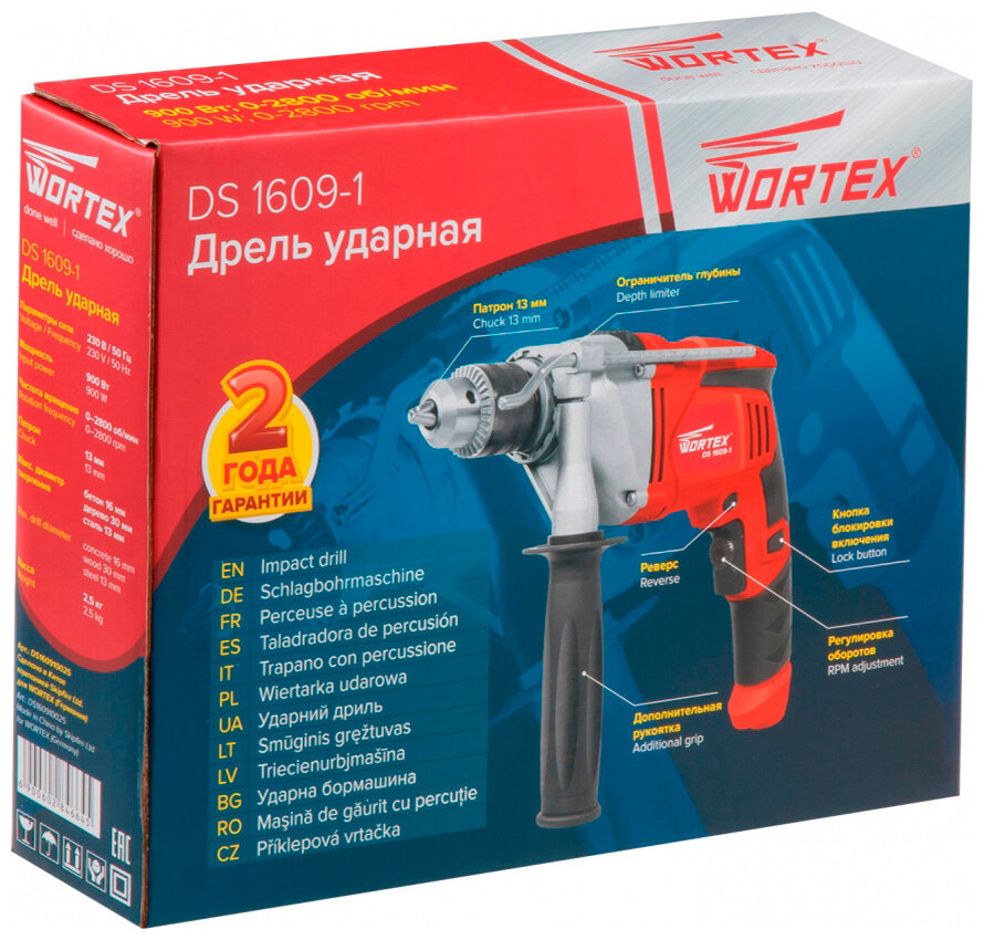 Дрель ударная Wortex DS 1609-1