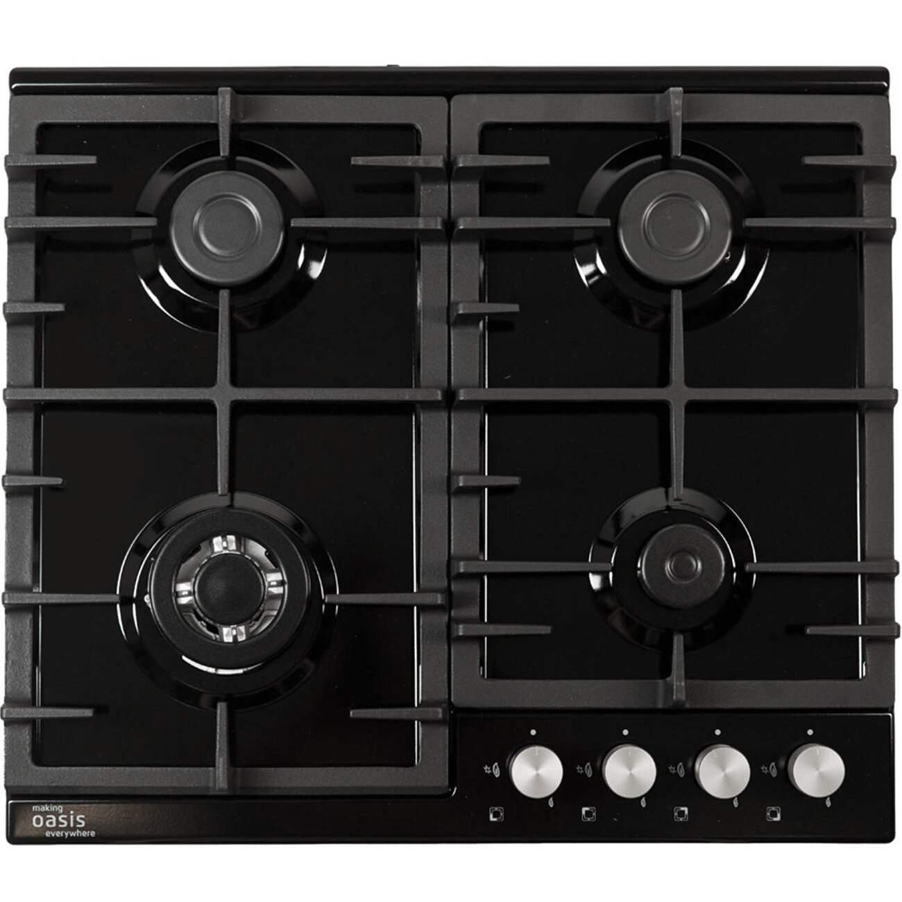 Купить Газовая варочная панель Oasis P-MBRT, встраиваемая, нержавеющая сталь, чугун, 4 конфорки, чёрная