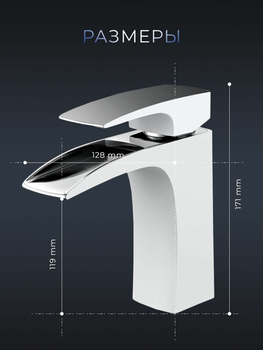 СохранитьAltroBagno Смеситель для раковины в ванную с водопадным изливом, белый / хром интересное: