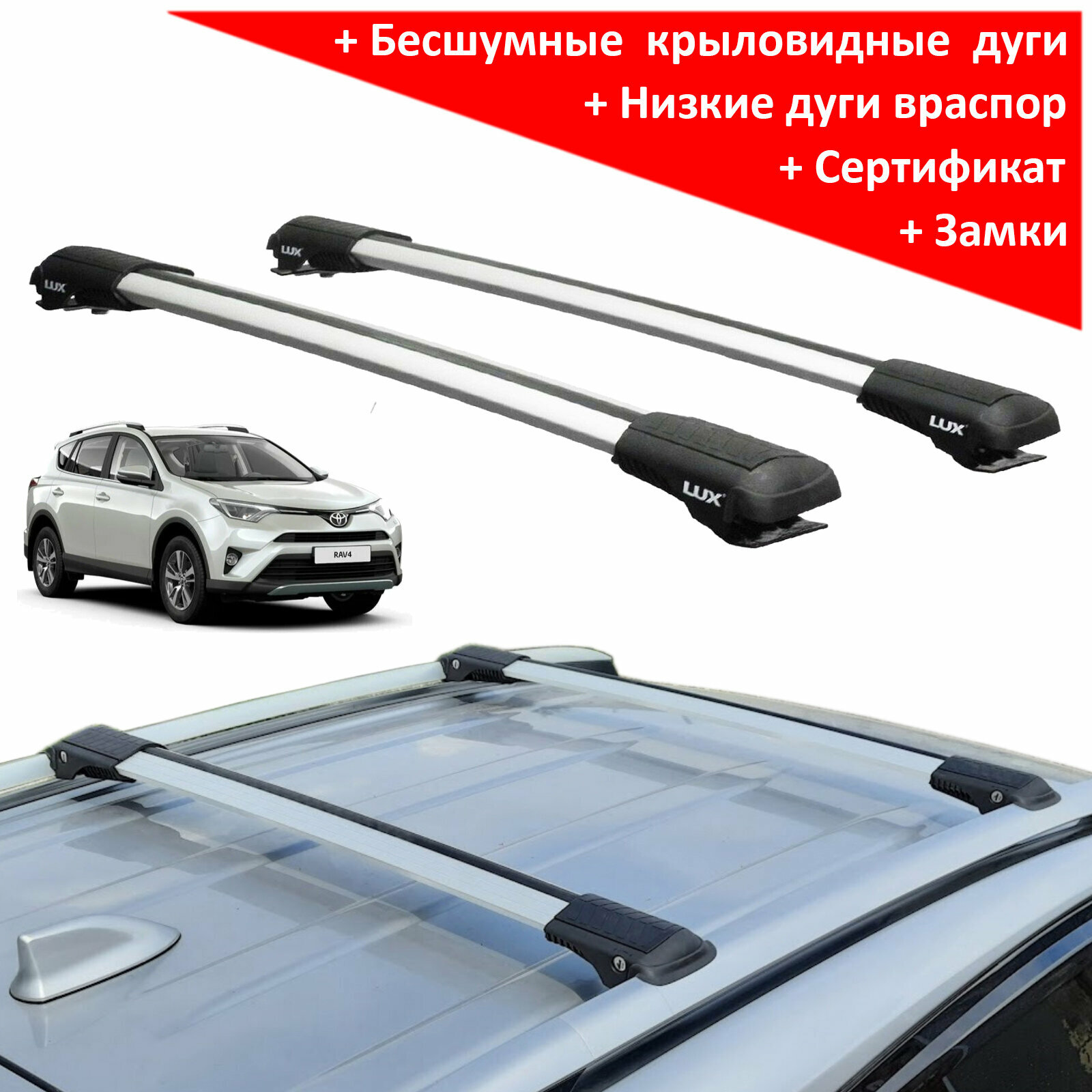 Багажник на рейлинги Тойота Рав4 (Toyota RAV4 IV (CA40) 2012-2018) - Lux Hunter L54-R, серебристые дуги интересное: