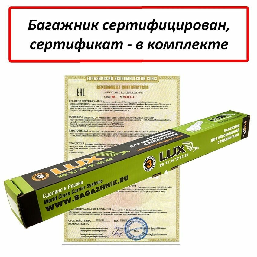 | Дополнительная информация | Бесшумная багажная система Lux Hunter (враспор, без вылетов), производство - Lux (Россия, Москва). Размер L-44R, черные дуги. |