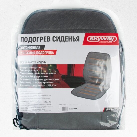 SKYWAY S02201019 Накидка на сиденье с подогревом с терморегулятором (2 режима) 95х47см 12V Серый 2,5А-3А; SKYWAY