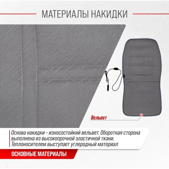 Подогрев сидений со спинкой серый вельвет 95х47 см, с регулятором (2 режима), S02201019