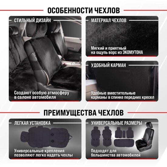 СохранитьЧехлы сиденья меховые искусственные мутон ТМ Skyway SKYWAY ARCTIC Черный 1079, 5 предметов интересное: