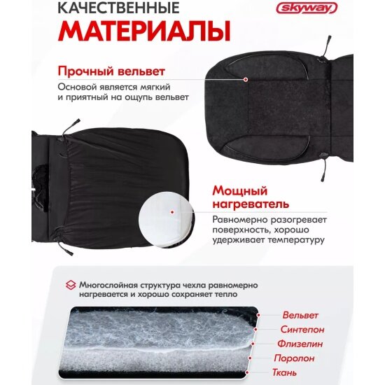 СохранитьЧехол сиденья с подогревом вельвет ТМ Skyway SKYWAY с терморегулятором (2 режима) Черный с боковой поддержкой спины 12V 116х56см 2,5А-3А (2 шнура: справа, слева) интересное: