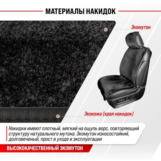 Накидка сиденья меховая искусственная мутон ТМ Skyway SKYWAY ARCTIC Черный Гладкая, 2 предмета интересное: