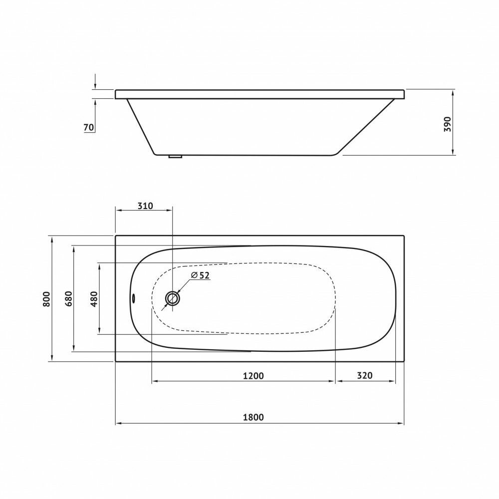 Ванна акриловая Berges Tari 050028 1700х800х610 цвет белый, (без монтажного комплекта/ножек)