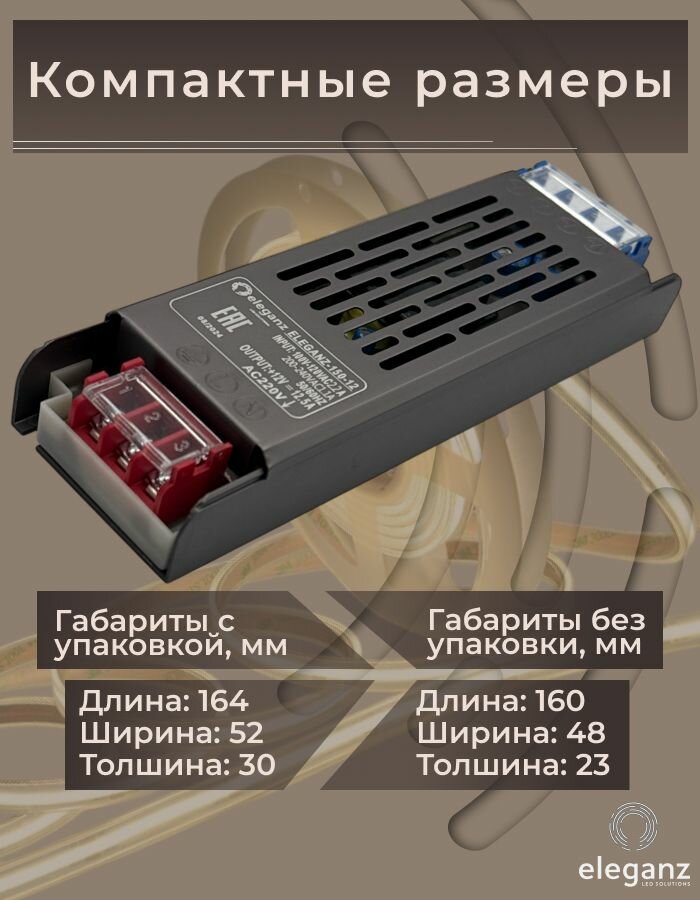 СохранитьУзкий блок питания для светодиодных лент 12v "Eleganz 150w", трансформатор для ленты, IP44 интересное: