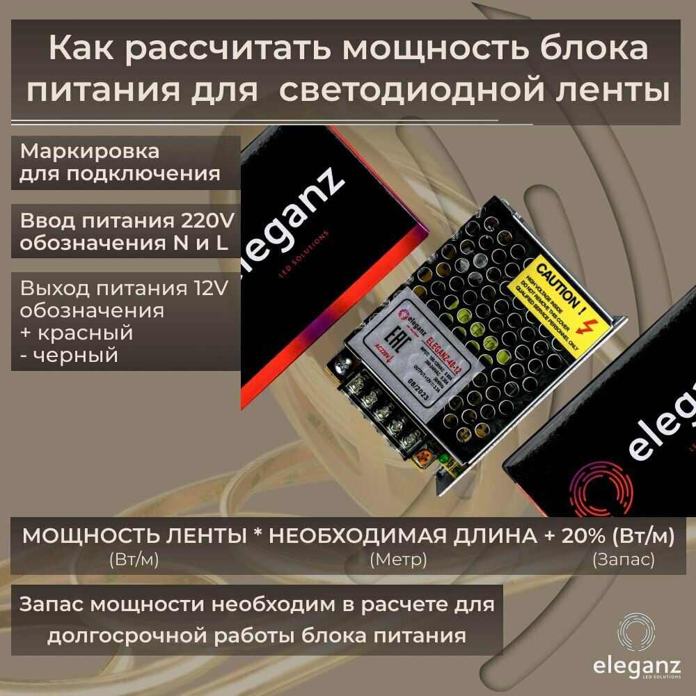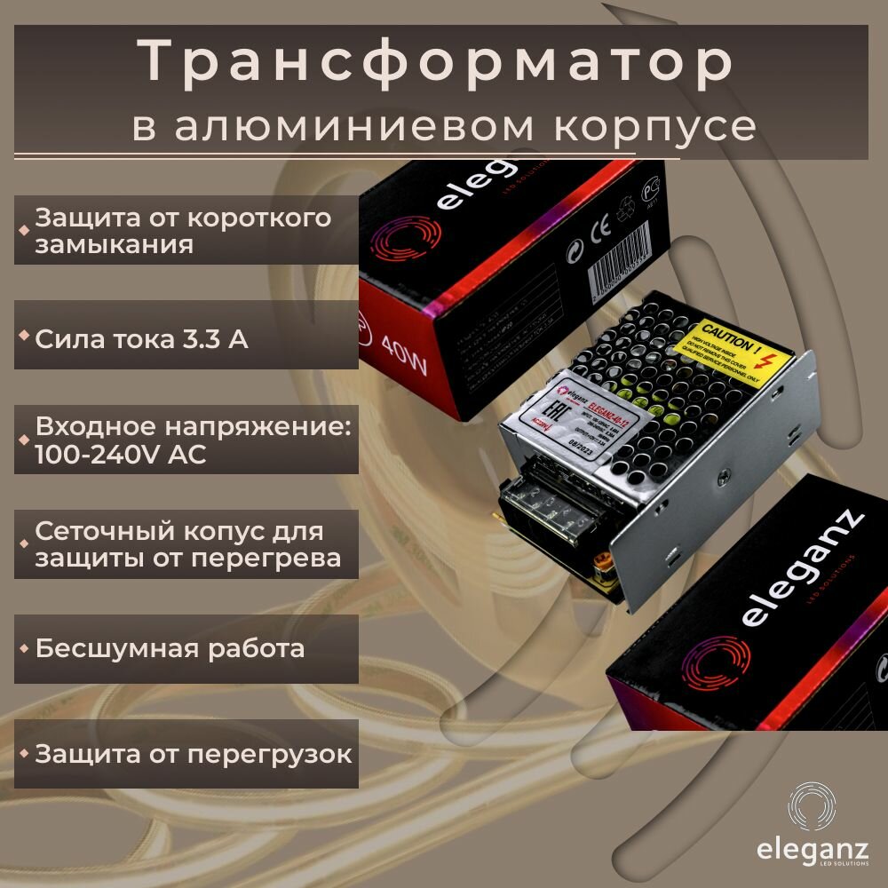 Купить Блок питания для светодиодных лент 12v "Eleganz 40w", трансформатор для ленты, IP20