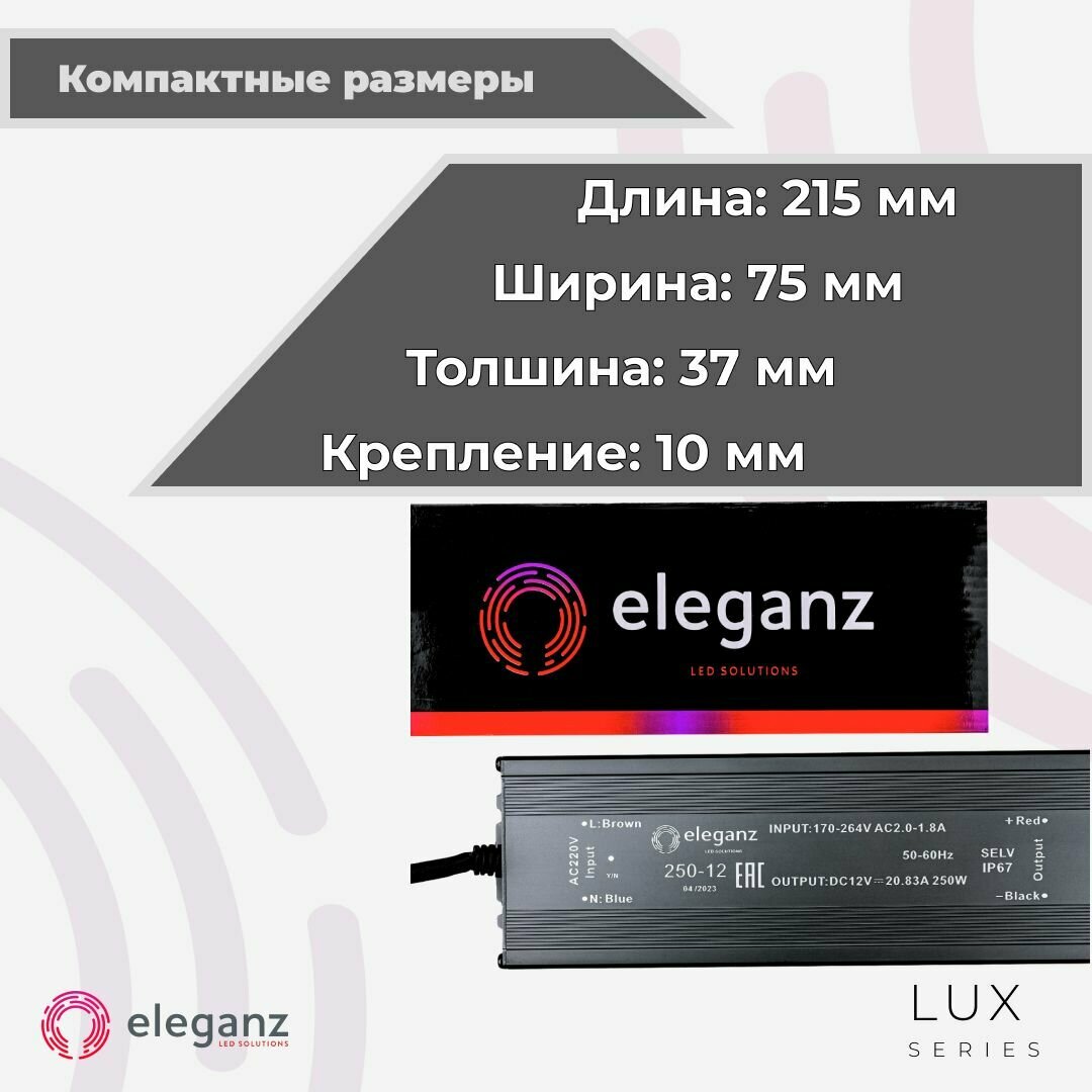 Купить Герметичный блок питания для светодиодных лент 12v (металлический корпус) "Eleganz 250w", трансформатор для ленты, IP67