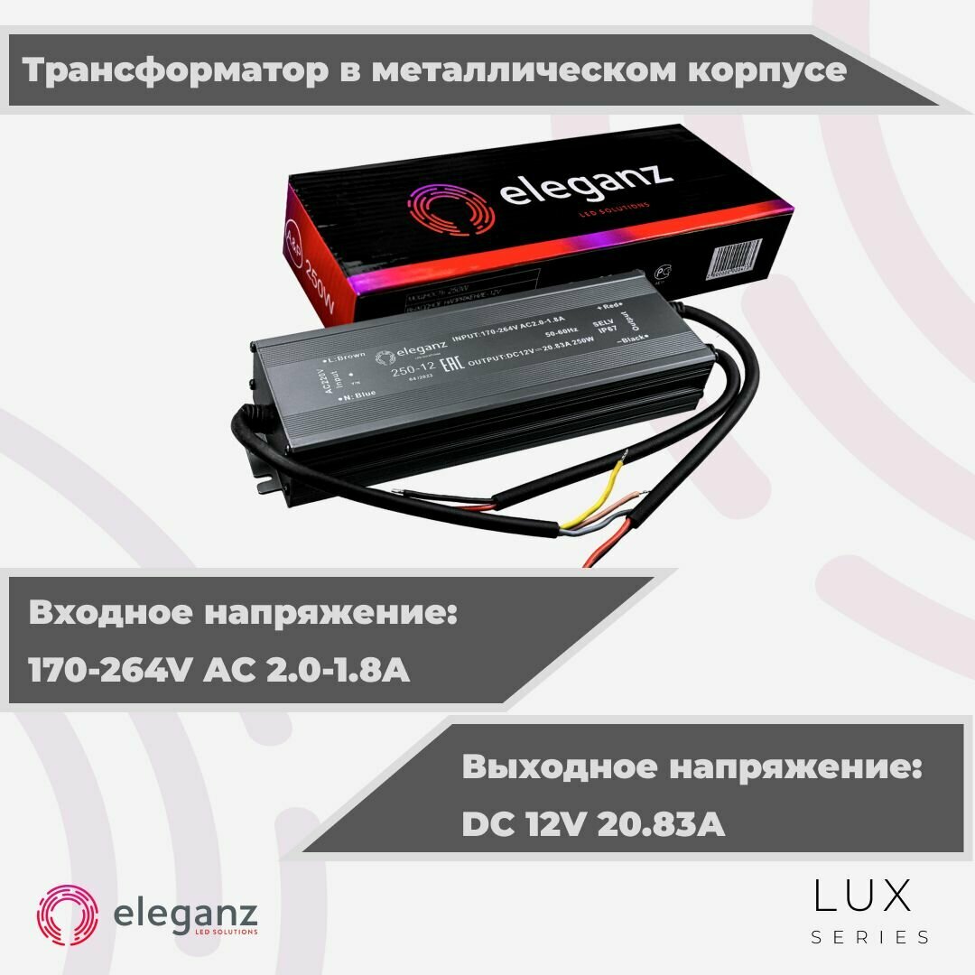 Герметичный блок питания/трансформатор (металлический корпус) "Eleganz 250Вт" для светодиодной ленты 12В IP67