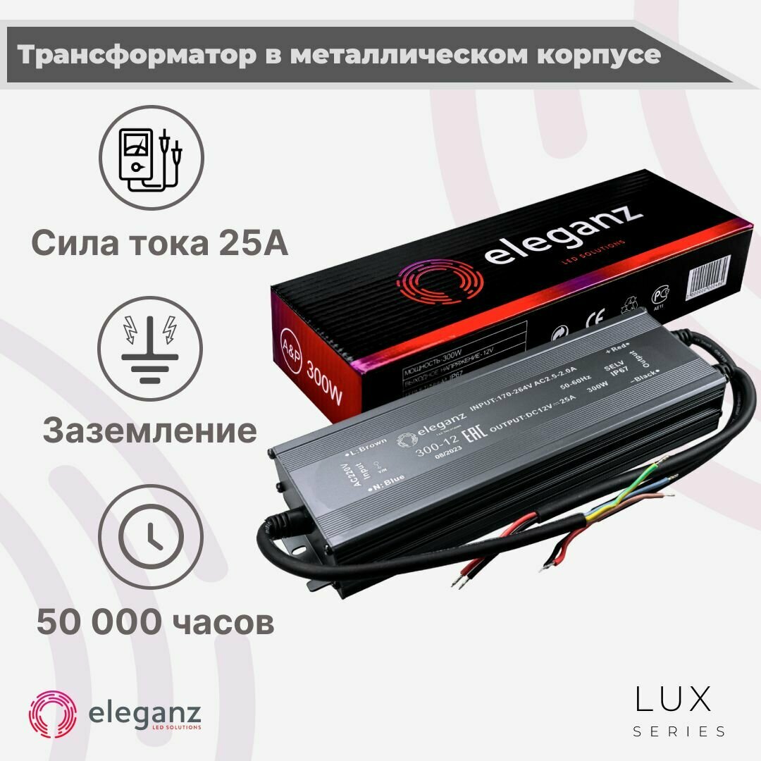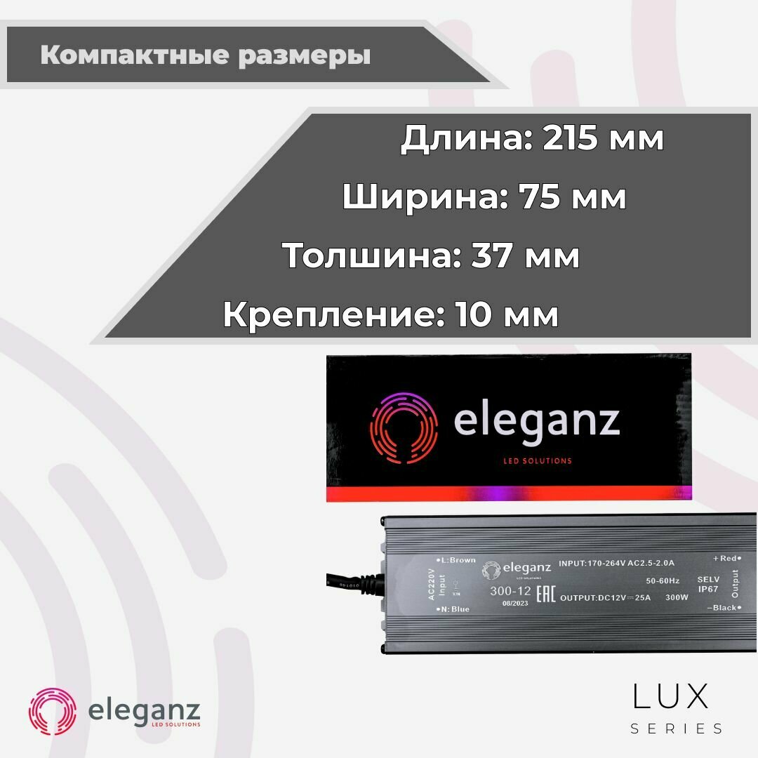 СохранитьГерметичный блок питания для светодиодных лент 12v (металлический корпус) "Eleganz 300w", трансформатор для ленты, IP67 интересное: