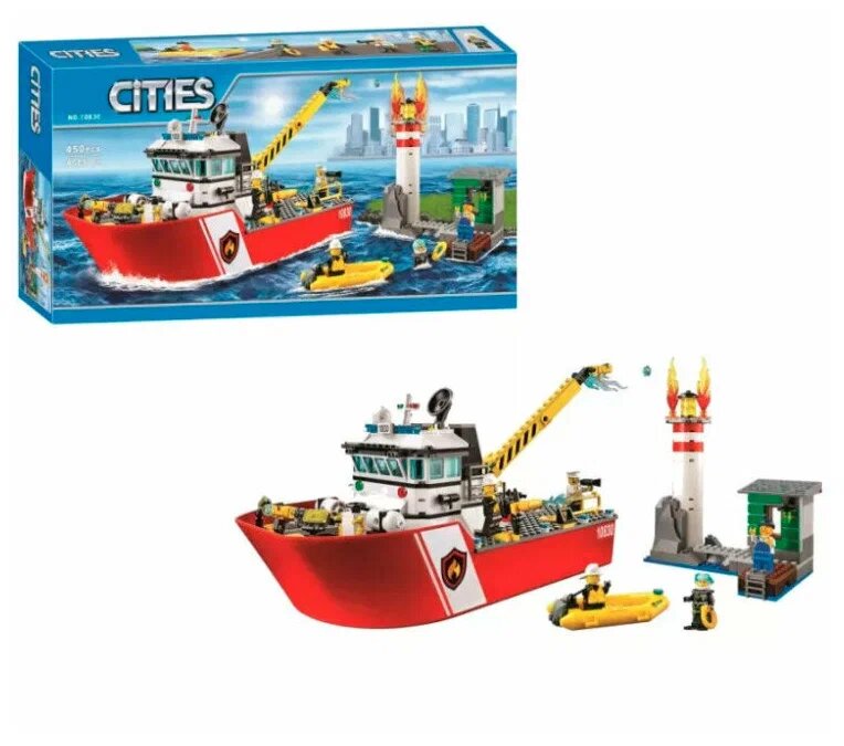 Конструктор Cities Пожарный катер 10830 450 деталей
