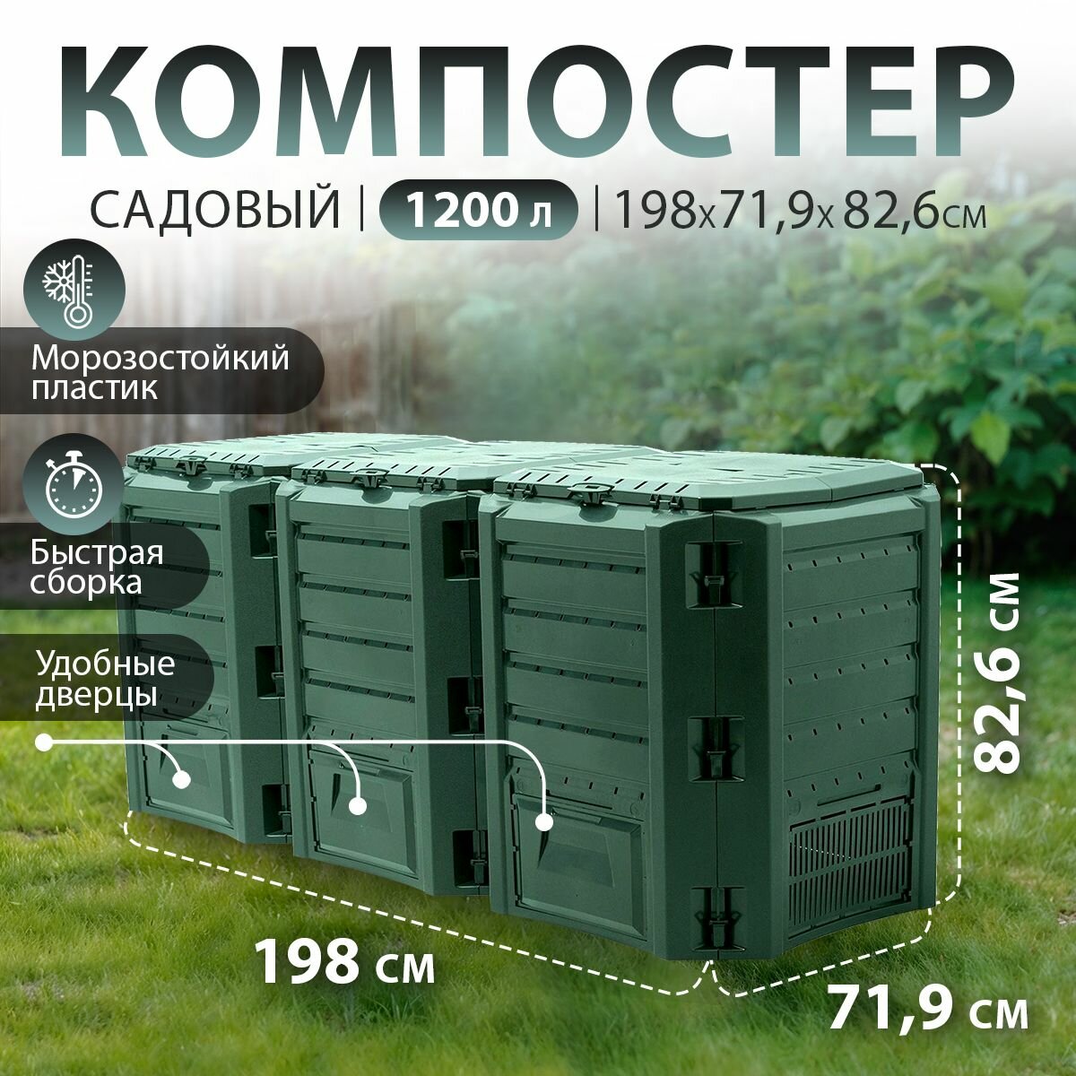 Садовый компостер PROSPERPLAST Module Compogreen 1200 л (1980 × 719 × 826 мм, зелёный)
