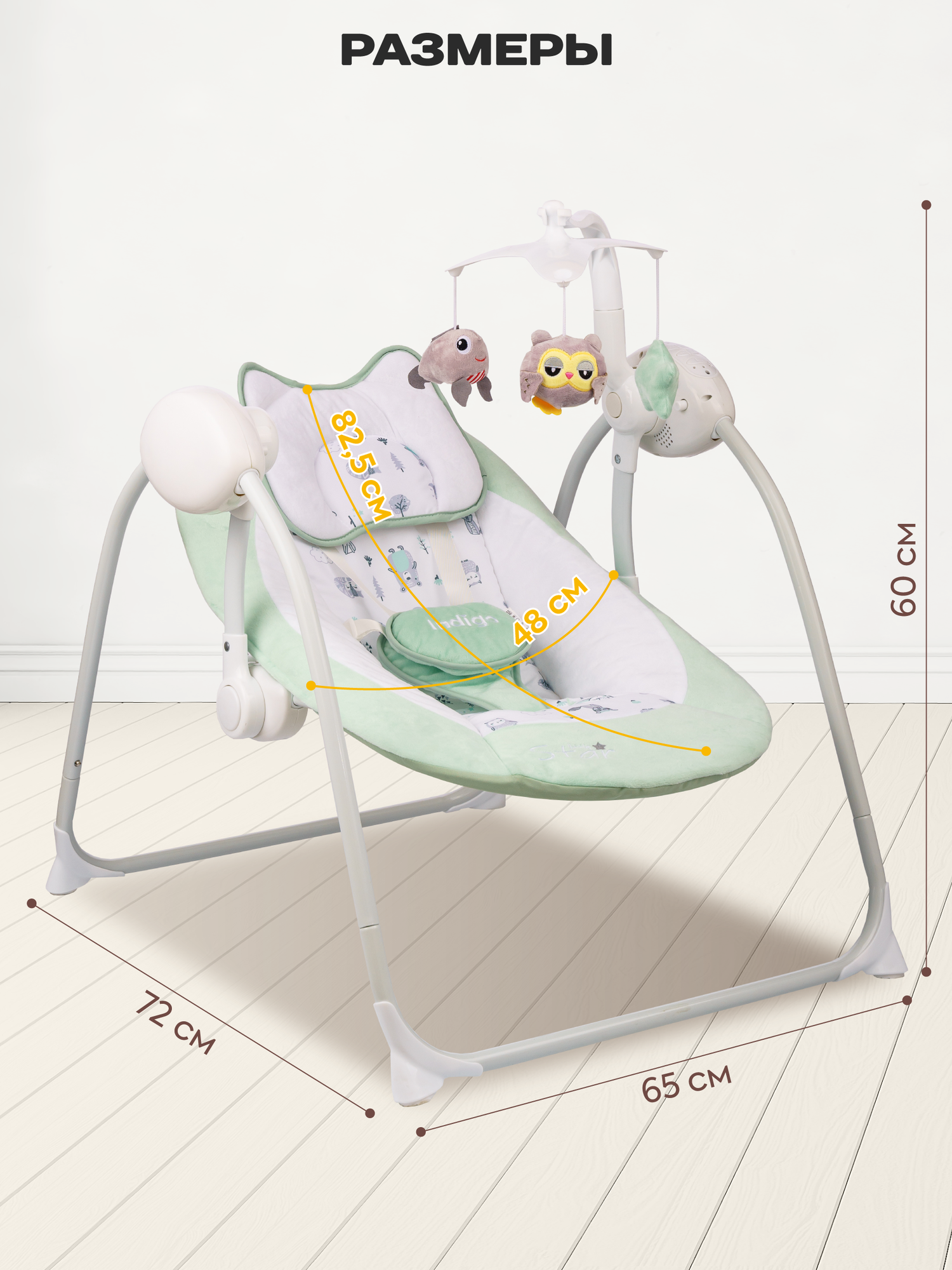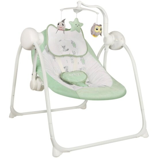 Электронные качели Indigo STAR (0-9 кг), с адаптером, п/у, 12 мелодий, 5 скоростей, москитка, мятный