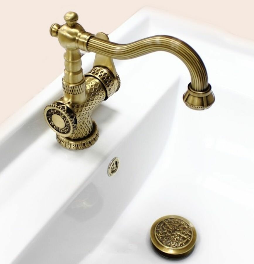 Смеситель Zorg Antic A 413U-BR для раковины, латунь бронзовый, с орнаментом, ретро, винтажный, поворотный