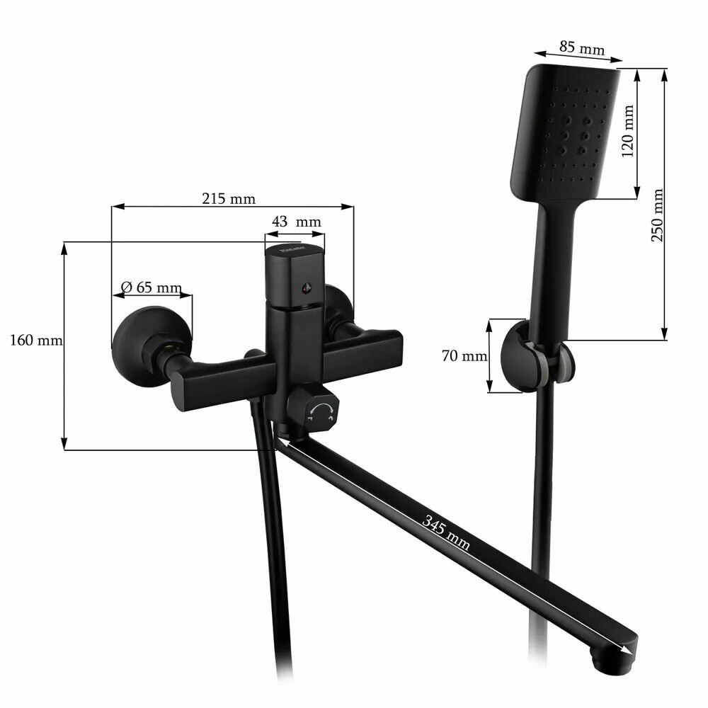 Купить Смеситель для ванны с длинным плоским изливом, черный P22360BL