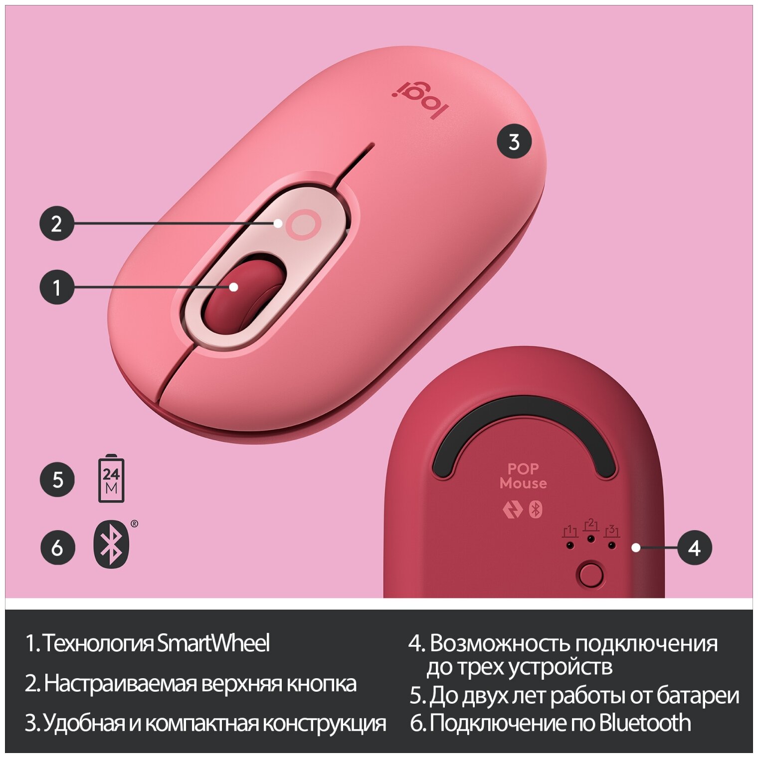 Купить Logitech мышь беспроводная POP, Версия CN, Доступно для MAC и Windows, розовый, Bluetooth