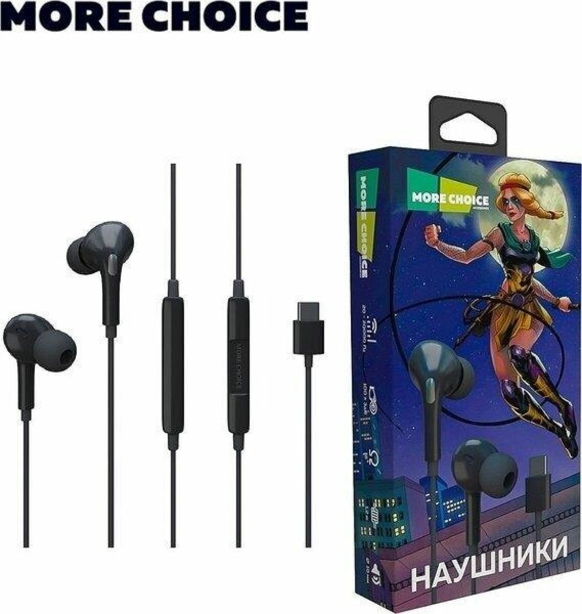 Купить Наушники More choice G31Sa вакуумные Type-C разъём с микрофоном и рег. громкости длина 1.2м черный