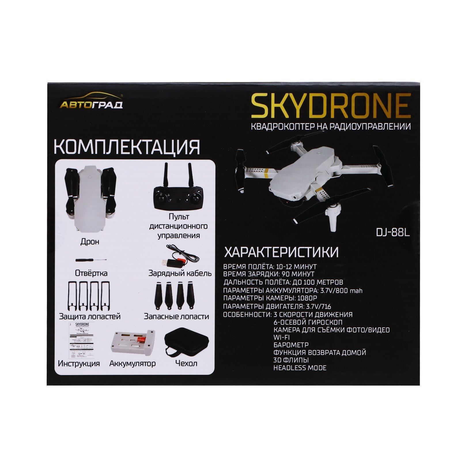 | Функции | 3D пилотирование / headless mode / возвращение в точку взлета |