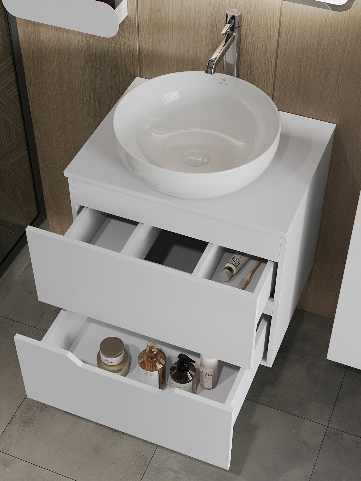 Тумба с раковиной Orange Line Li-60Tuw+Ra белый матовый