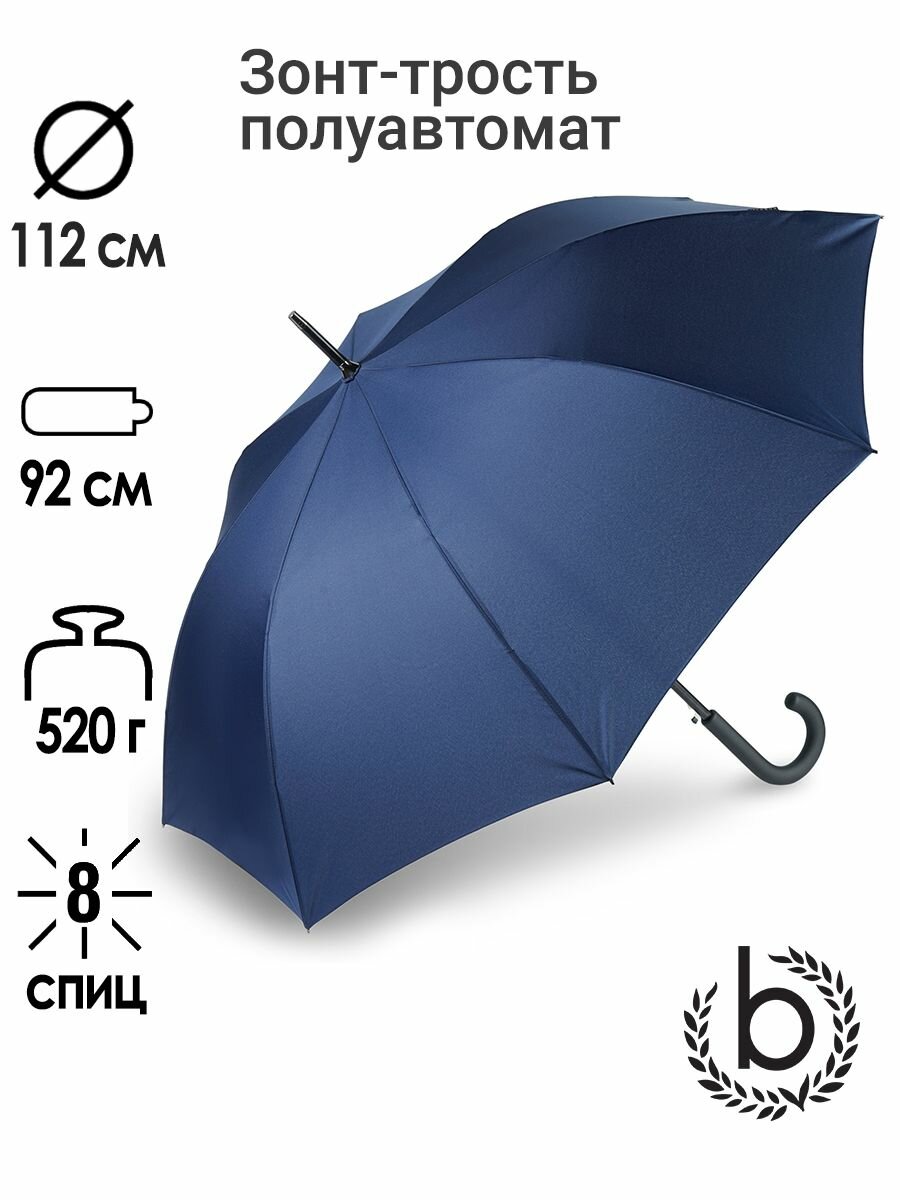 Мужской зонт-трость Bugatti темно-синий, купол 112 см, 8 спиц