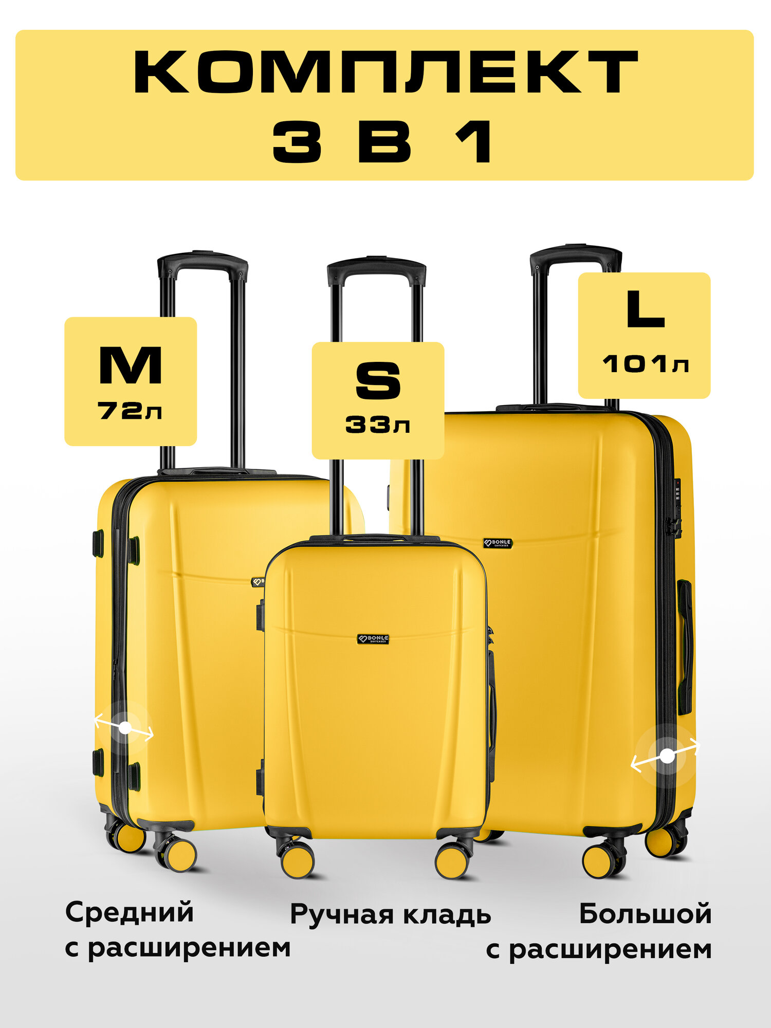 Комплект чемоданов на колесах желтый 3 шт размер S, M, L дорожный маленький ручная кладь, средний и большой