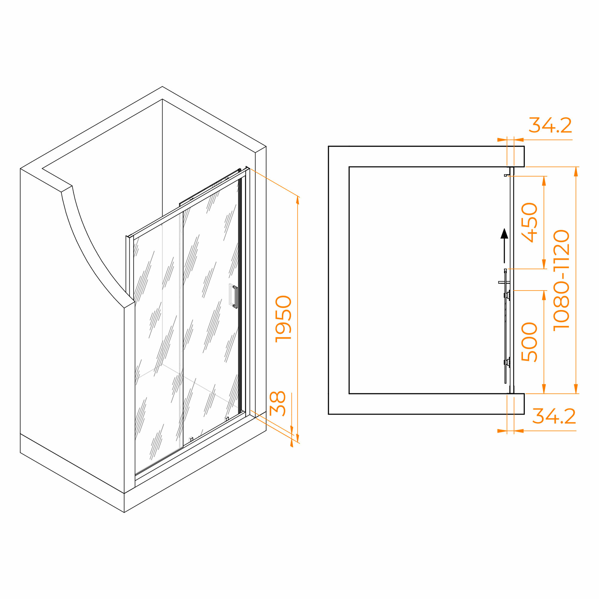 Душевая дверь RGW PA-14 раздвижная 110 см профиль хром, стекло прозрачное 6мм