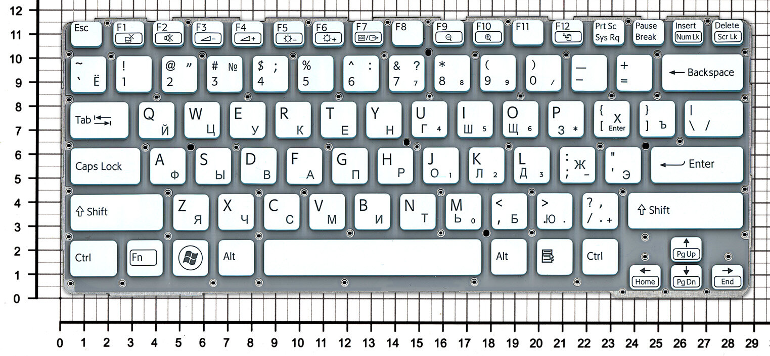 Клавиатура для Sony Vaio SVE1411E1RW. RU3 белая с голубым без рамки интересное: