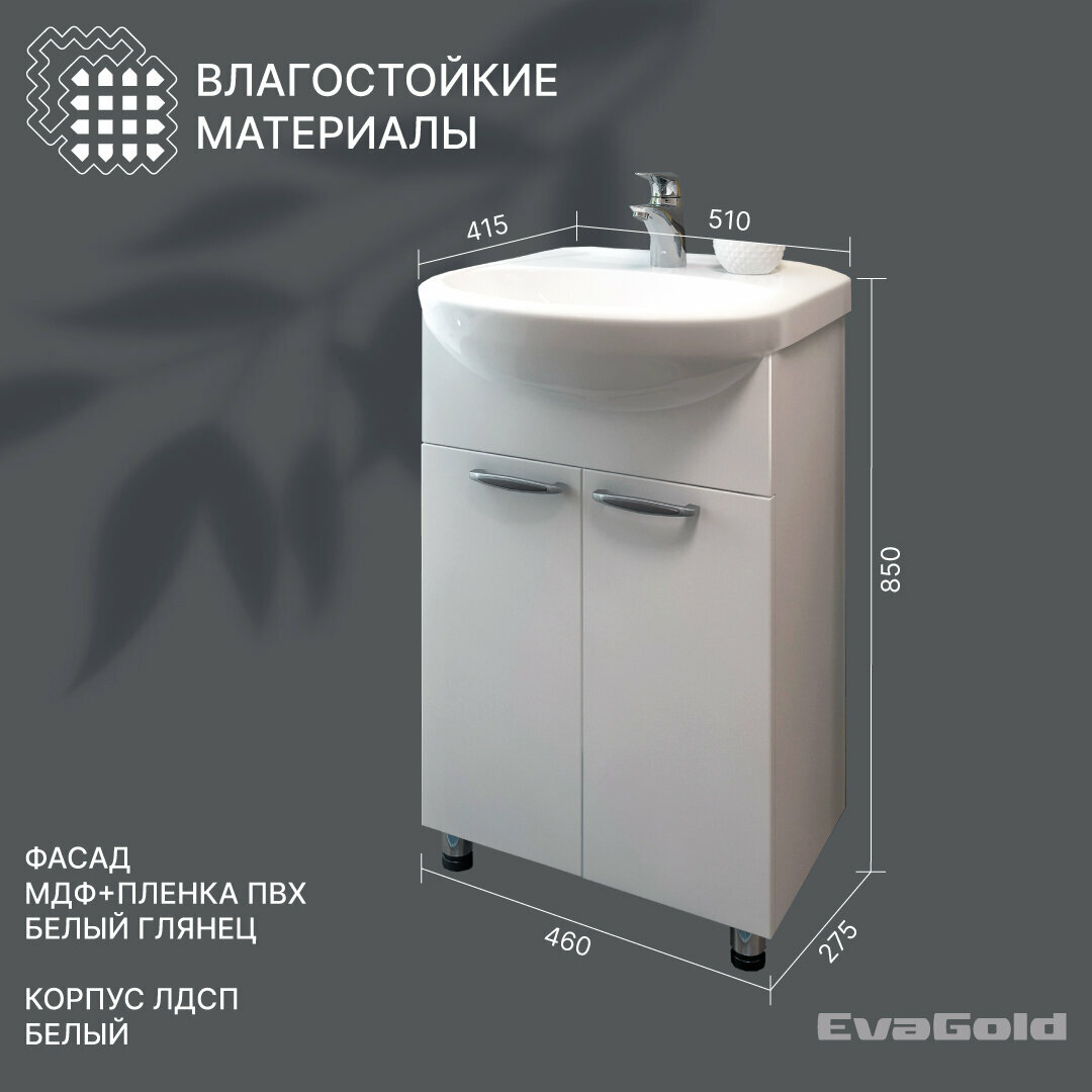 Тумба с раковиной EvaGold 50 см, набор ND25.4 белый для ванной