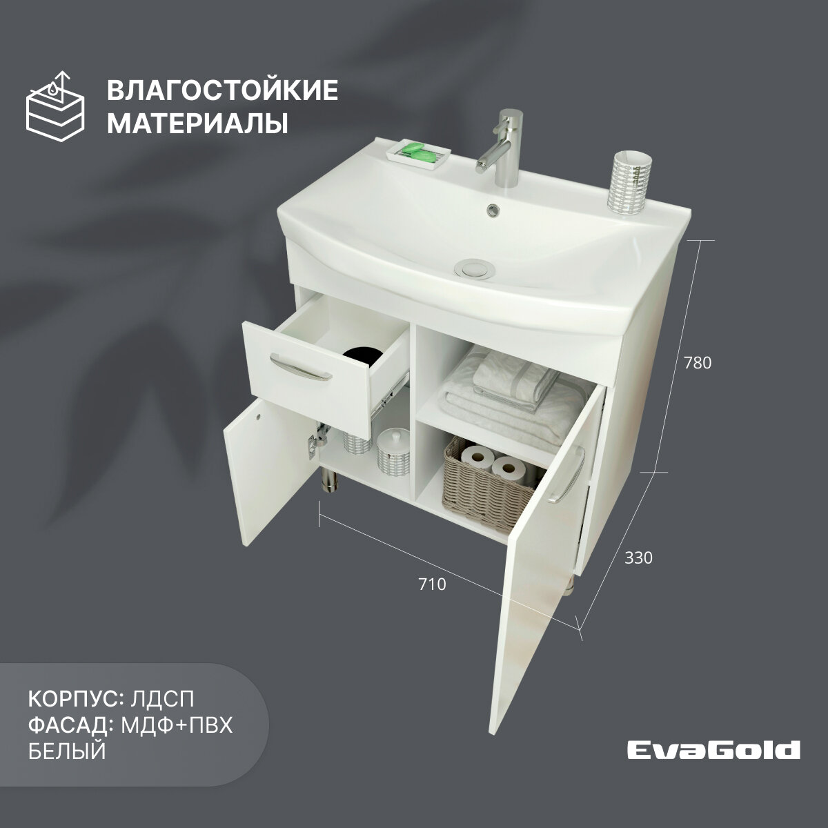 Тумба с раковиной EvaGold 65 см, набор ND25.5 белый для ванной