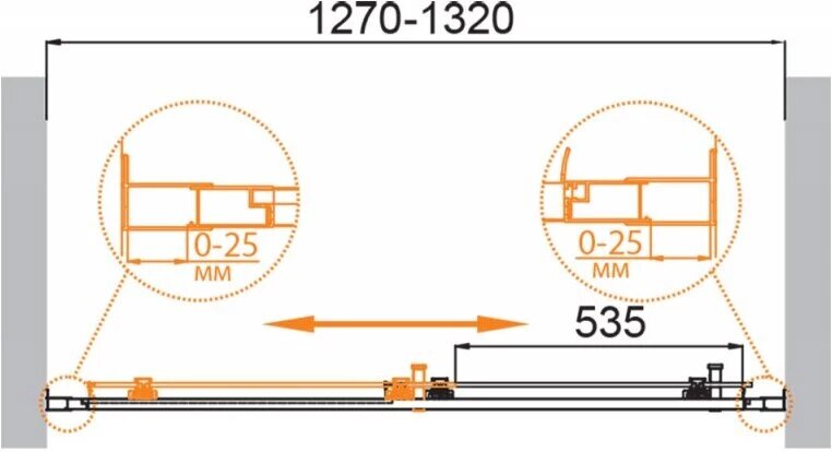 Дверь душевая раздвижная Cezares Molveno профиль хром Molveno-Bf-1-130-C-Cr-Iv