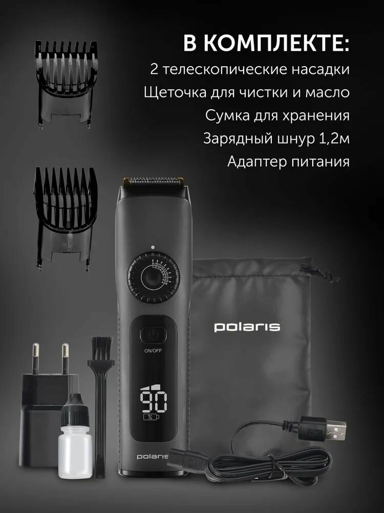 Машинка для стрижки волос Polaris PHC 0954, 4 сменные насадки, серый